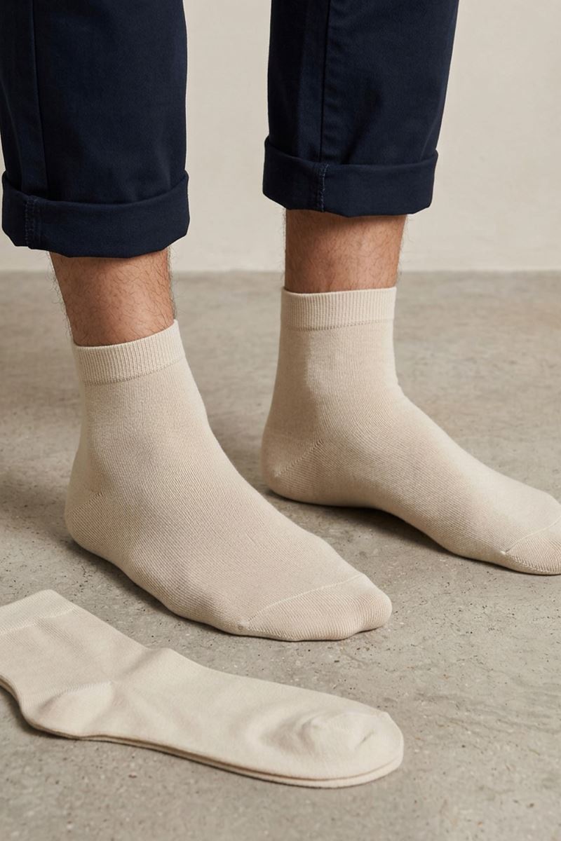 Düz Bambu Kıskonç Bej 6 Lı Erkek Çorap Bej