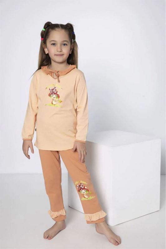 Bross Kız Çocuk Mantar Baskılı Bej Pijama Takımı Bej