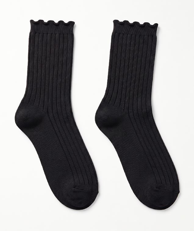 Kadın Fırfırlı Lastiksiz 2li Siyah Soket Çorap Siyah